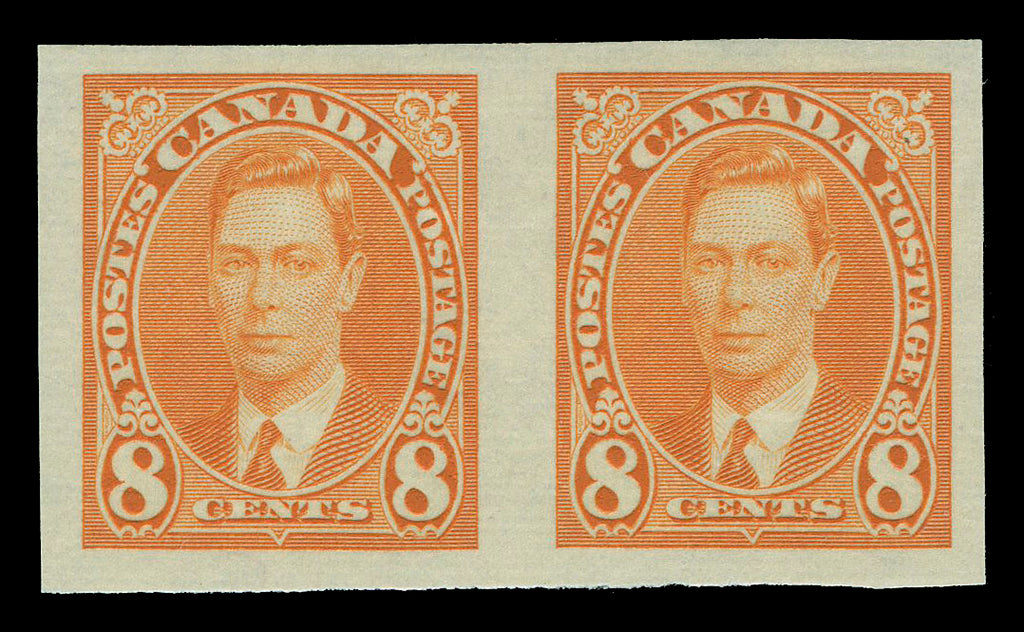 1c to 8c King George VI - The complete set of six imperforate pairs, fresh mint, VF NH